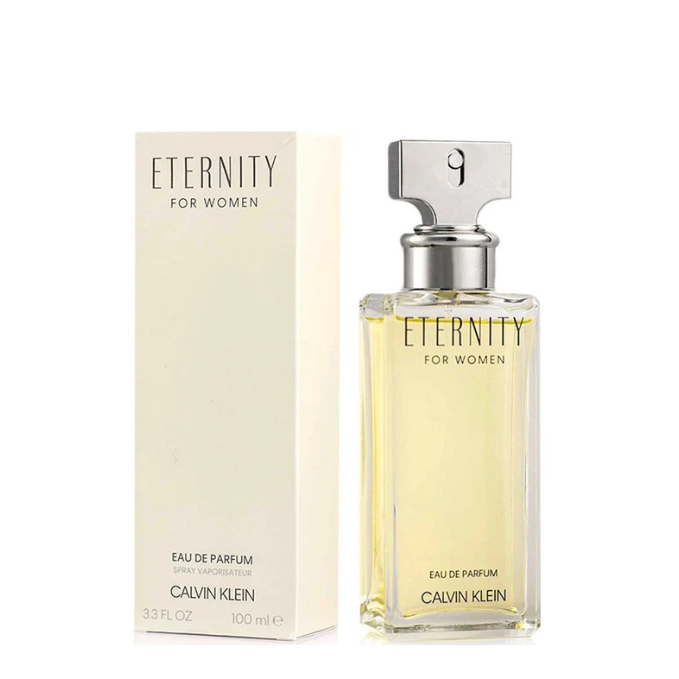 Calvin Klein Eternity Eau de Parfum for Women – 100ml: A long-lasting floral fragrance with bergamot, white lily, rose, sandalwood, and amber. Perfect for daily wear, evenings, and special occasions, this perfume combines elegance, romance, and timeless sophistication.